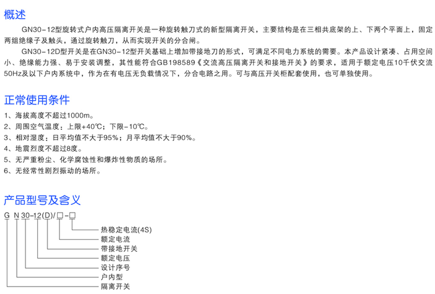 GN30-12系列戶內旋轉式高壓隔離開關