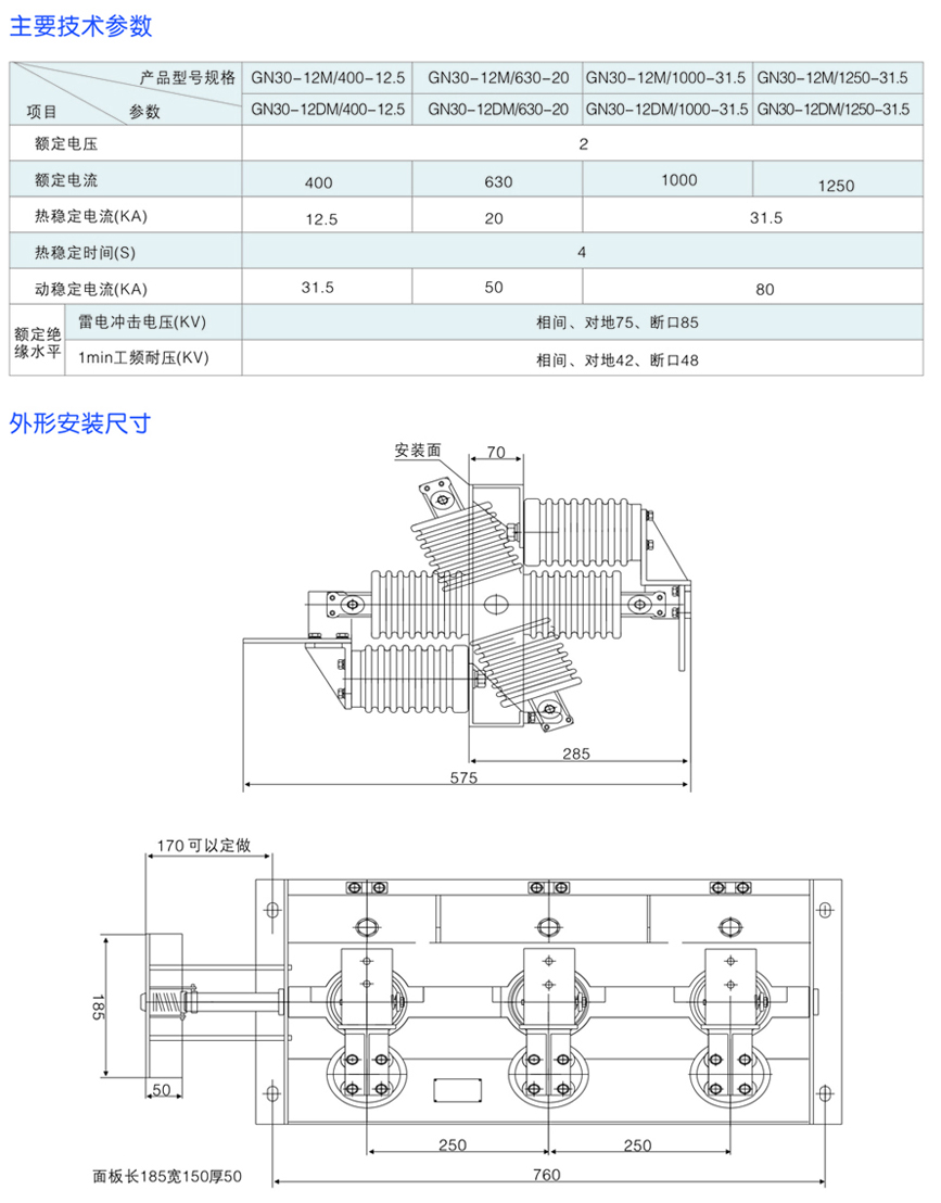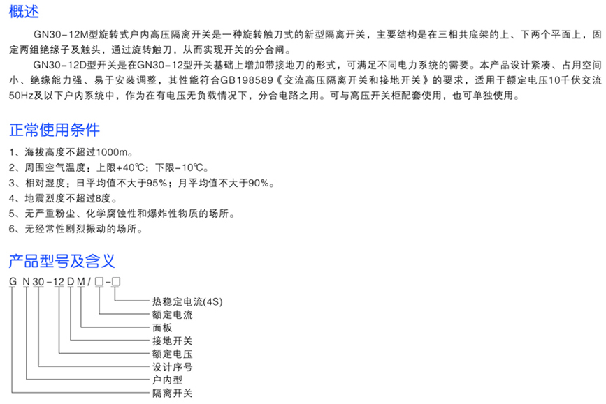 GN30-12M系列戶內旋轉式高壓隔離開關