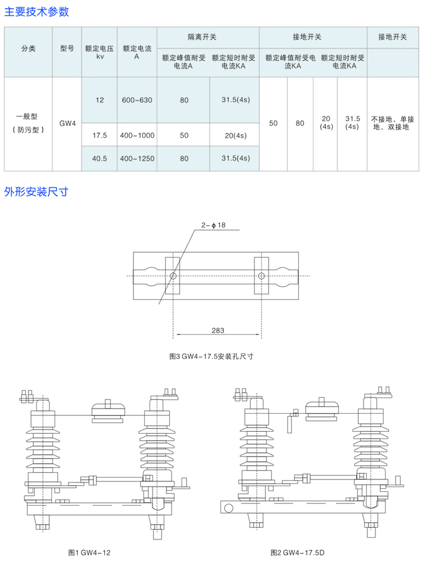 GW4-12(17.5/40.5)系列戶外交流高壓隔離開關
