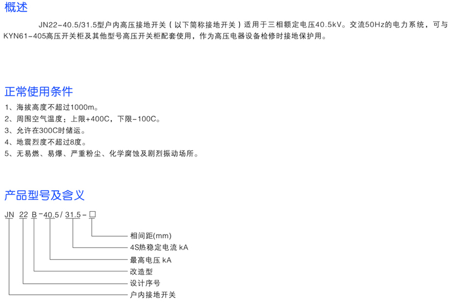 JN22B-40.5/31.5戶內高壓接地開關