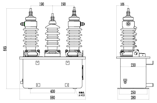 本型互感器內部為環氧樹脂真空澆注結構, 外部為鐵殼式, 主要適用于額定頻率為SOHz或60Hz , 額定電壓10kV及以下電力系統中作電能計量、 電流電壓測量用。本產品的特點是對內部的產品起到一個防護作用, 可以耐污穢, 抗紫外線,防酸雨等 ,并可生產帶負控輸出