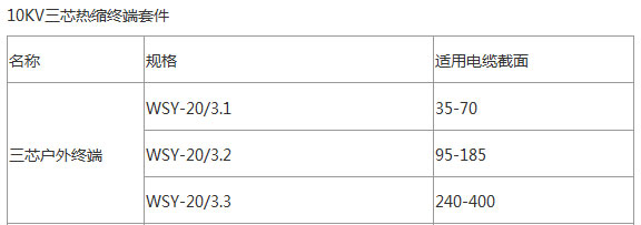 3芯,廣泛用于8.7/15KV及以下電壓等級交聯電纜或油浸式電纜終端。與傳統的電纜附件相比,它具有的優點:體積小,重量輕,安全可靠,易于安裝。