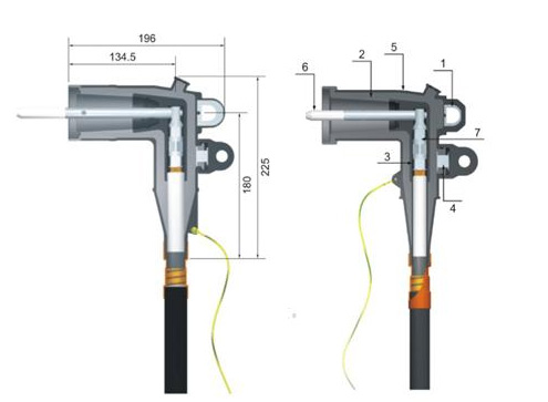式變壓器及其它設備的連接,為全絕緣、仝密封的插入式終端頭.其額定電流200A。其導電桿連接又具有滅弧功能.與帶有滅弧裝置的200A套管連接,可作為負荷開關操作200A電流。操作極為方便.但不能切斷短路電流。適用截面35-185mm。