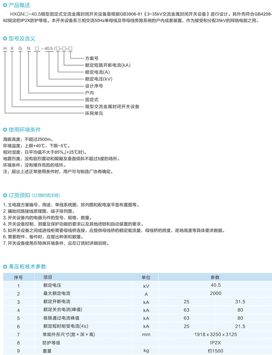 HXGN口-40.5高壓真空環網開關設備