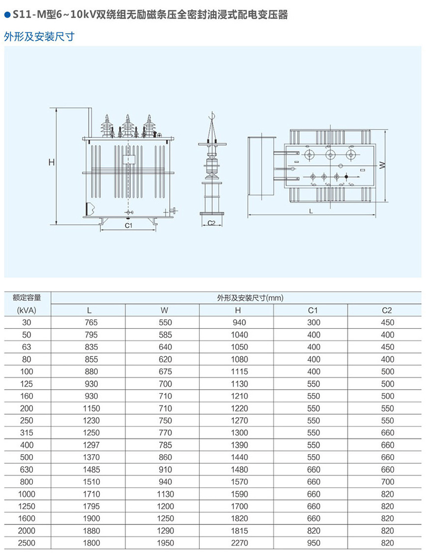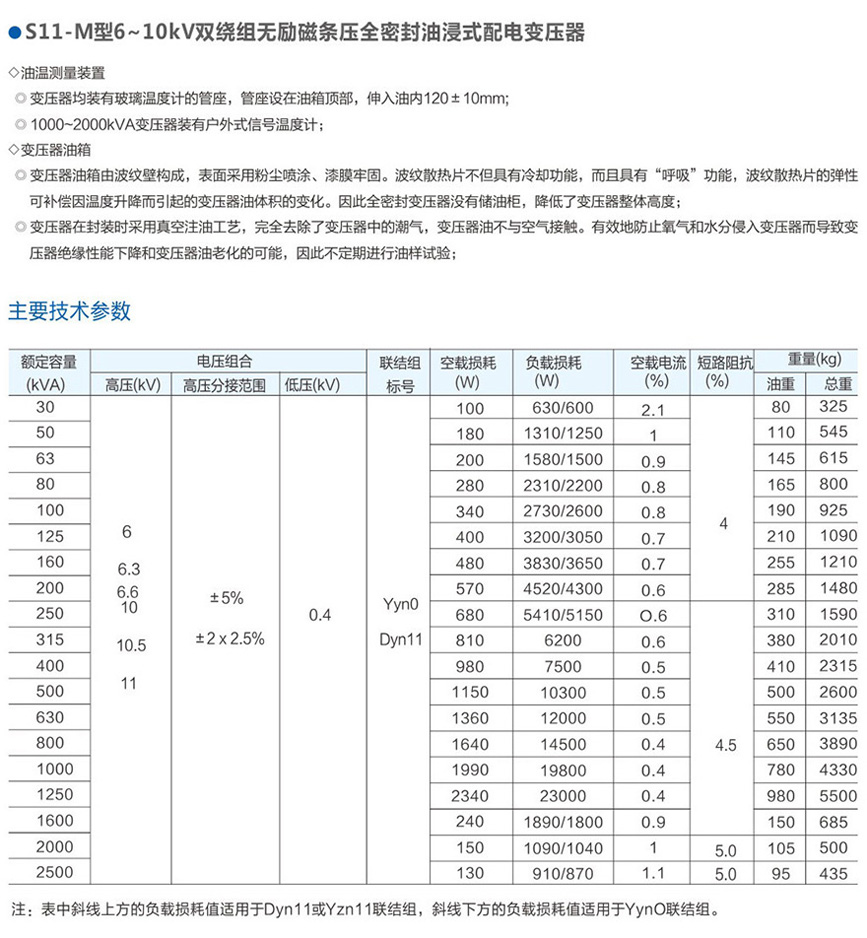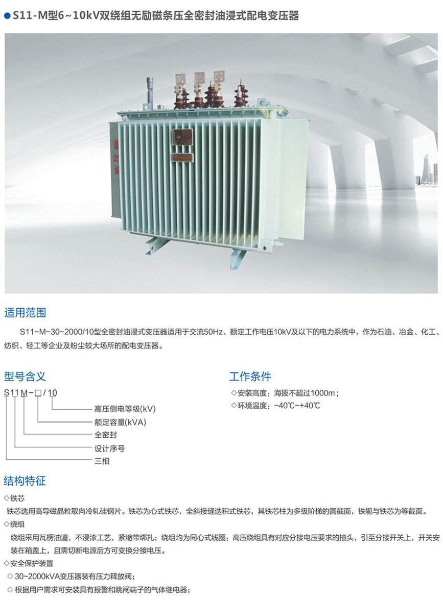 S11 M6~10kV雙繞組無勵(lì)磁油浸式變壓器