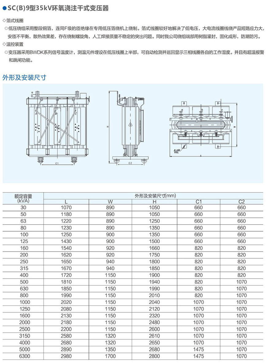 SC(B)9型35kV環氧澆注干式變壓器