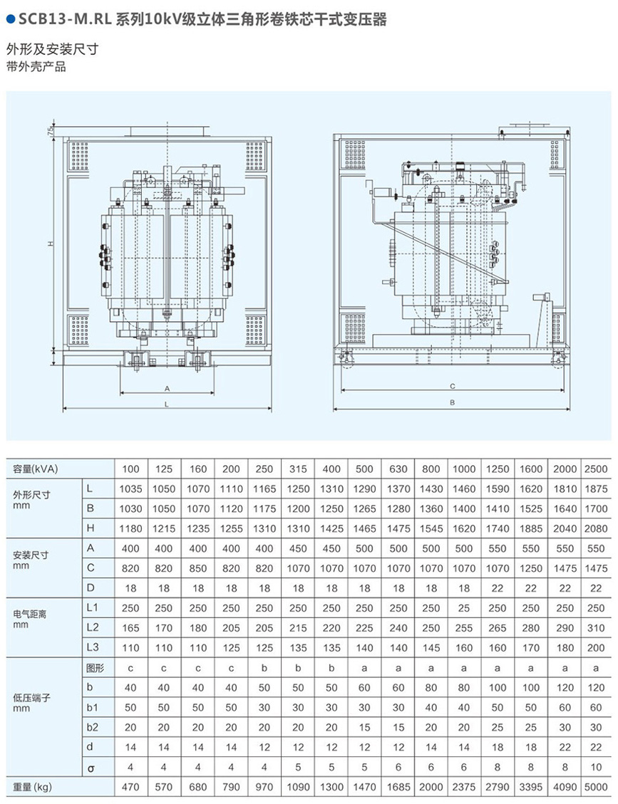 SC(B)13-M.RL系列10kV級立體三角形卷鐵芯干式變壓器