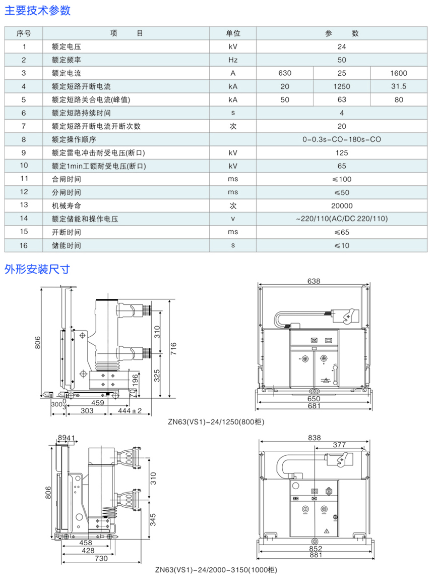 ZN63(VS1)-24戶內高壓真空斷路器